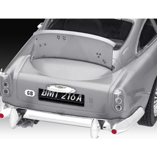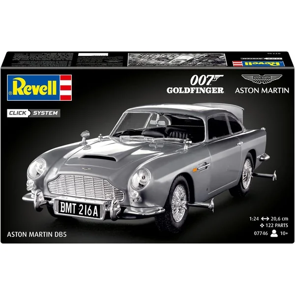 Maquette Click System de niveau 2, de l’emblématique Aston Martin DB5 du film Goldfinger, à l’échelle 1:24. : 122 pièces faciles à encliqueter, pièces pré-peintes, pas besoin de colle, ni de peinture. Idéal débutant pour obtenir un résultat parfait dès la première maquette. 2 versions : Aston martin DB5 civile ou version James Bond (Equipée de : 3 plaques d’immatriculation, Mitrailleuses avant (dans les clignotants), destructeurs de pneus montés sur les roues, bouclier pare-balles monté à l’arrière, pulvérisateurs d’huile montés à l’arrière, siège éjectable (panneau de toit), Écran de navigation et de repérage embarqué, décalques, Téléphone embarqué). A partir de 10 ans.
