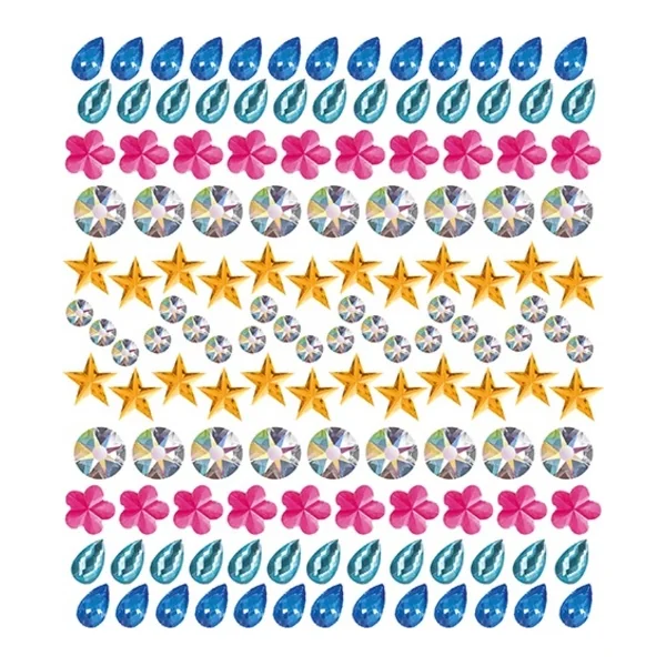 - Le set créatif comprend 3 feuilles avec des images à décorer et 2 feuilles remplies de paillettes colorées en « diamants » de différentes formes et couleurs à coller.