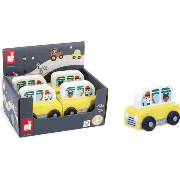 Janod Cross roads Voiture en bois à pousser Camionnette jaune