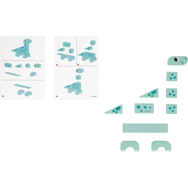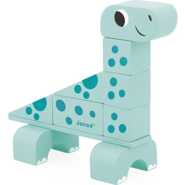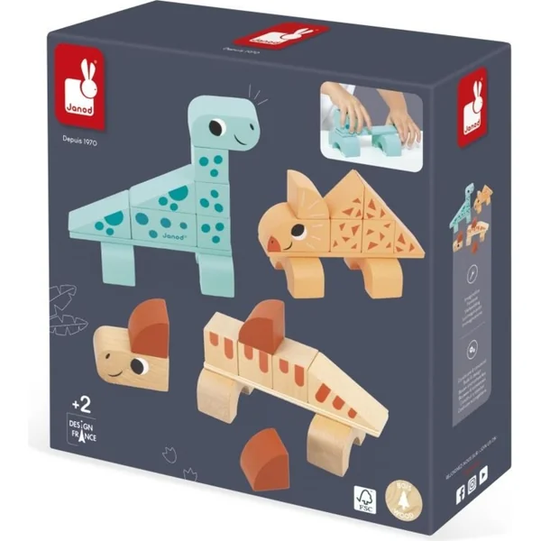 Janod Cubes en bois et ensemble de construction Cubikosaurus Dino