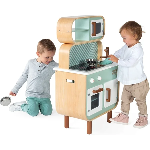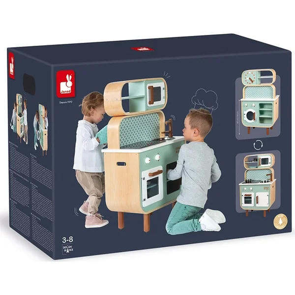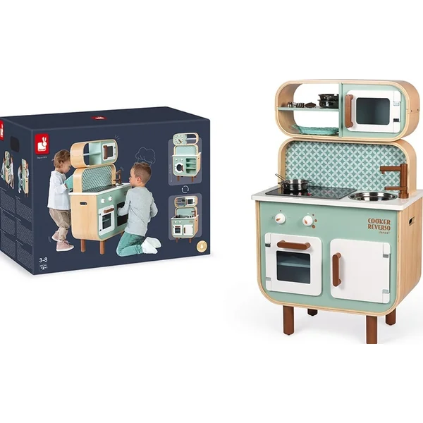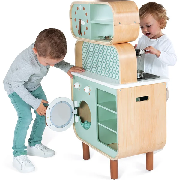 La cuisine en bois pour enfants Reverso Janod double face avec machine à laver et accessoires est dans une magnifique combinaison de couleurs, ce qui la rend adaptée aussi bien aux garçons qu’aux filles.
