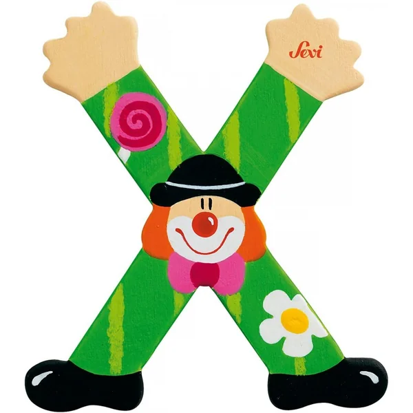 Les lettres en bois peintes avec le clown amusant s’adaptent à n’importe quelle porte et à n’importe quel meuble dans la chambre de votre enfant. Les lettres de 10 centimètres de hauteur peuvent être facilement attachées à n’importe quel endroit avec des pastilles adhésives.