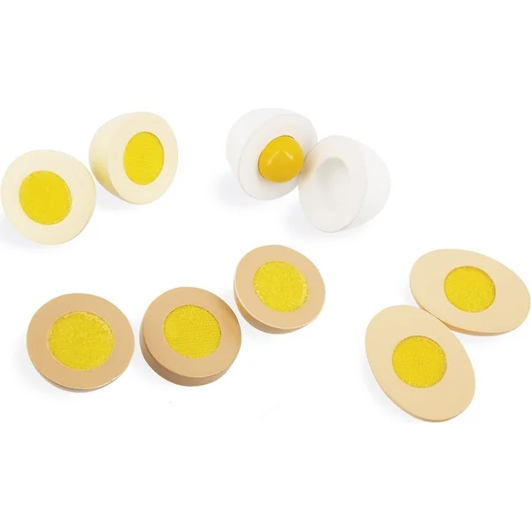 Le jouet idéal pour les jeux de rôle du monde des adultes. 4 œufs magnétiques en bois de différentes couleurs dans un emballage en carton seront certainement un excellent choix pour un enfant qui aime cuisiner et jouer dans la cuisine.