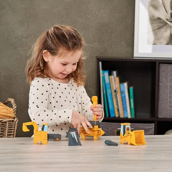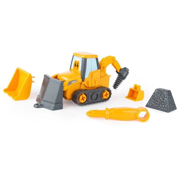 Tracteur et ferme à construire pour faire comme les grands ! Démonte toutes les pièces du tractopelle à l’aide du tournevis inclus et assemble-les de nouveau !
