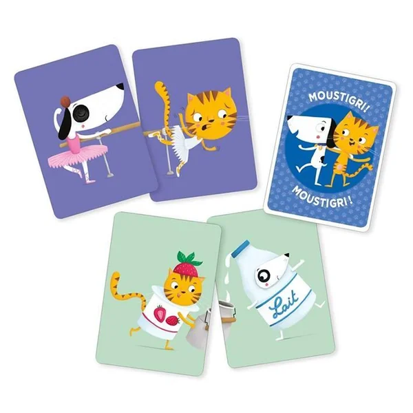 Ce nouveau jeu de cartes des éditions Auzou revisite le jeu Mistigri : le but est de faire des paires Médor – Moustache en piochant une carte à tour de rôle dans la main de ses adversaires. Pour gagner, il faudra terminer la partie avec la carte Moustigri dans ses mains !