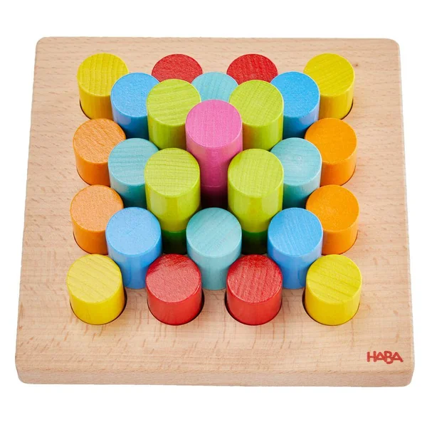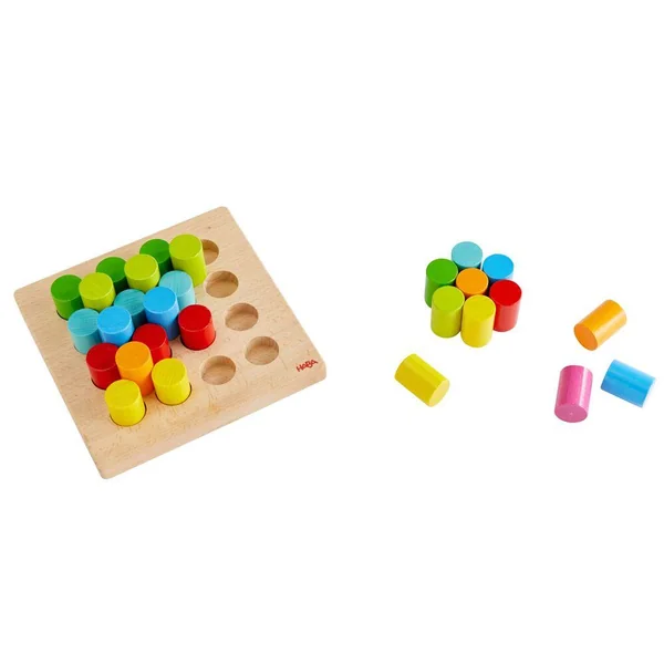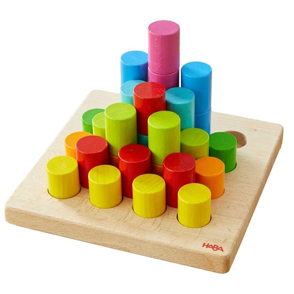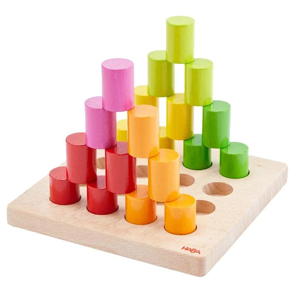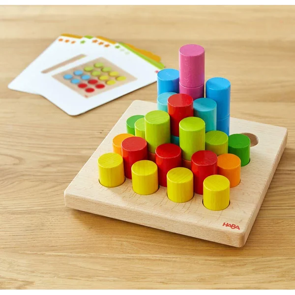 Les possibilités sont infinies avec les cylindres en bois de ce jeu de pin-up amusant ! Vous pouvez coudre, empiler et construire de différentes manières, chacune étant expliquée sur les cartes d’échantillons ci-jointes. Ces cartes imprimées recto verso contiennent des tâches à recréer, à 3 niveaux de difficulté différents. Vous pouvez insérer les pièces et créer des motifs, vous pouvez utiliser les cylindres comme des carreaux de mosaïque et laisser les couleurs représenter quelque chose, ou vous pouvez augmenter la hauteur en empilant les pièces les unes sur les autres. Le panneau de montage est également conçu de manière à ce que vous puissiez utiliser les espaces vides entre les pièces de montage pour accueillir encore plus de cylindres.