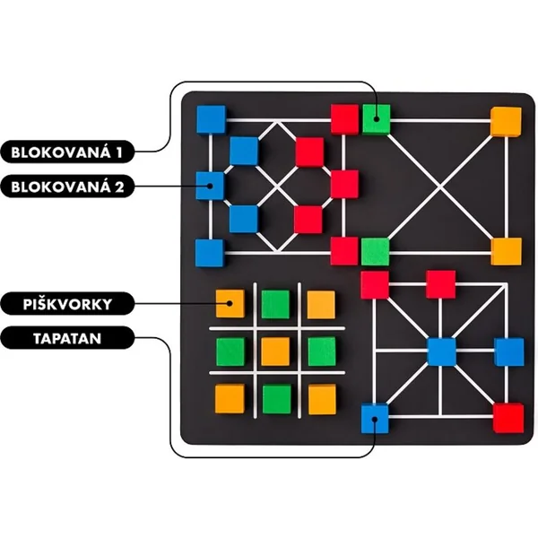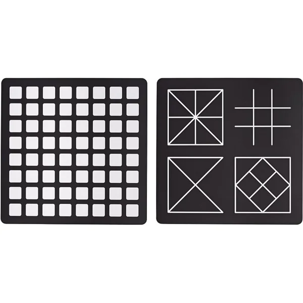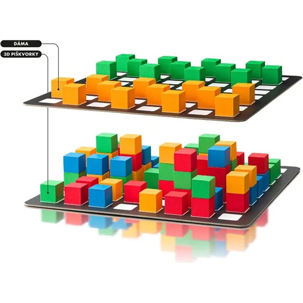 Plateau de jeu : 3D morpion Celui qui aligne 4 pions dans une ligne (ligne verticale, ligne horizontale, diagonale, diagonale transversale à travers plusieurs niveaux) gagne. Au moment où tous les pions sont utilisés et qu’aucune ligne n’est encore créée, les joueurs peuvent prendre les pions qui sont déjà sur le plateau et les déplacer vers n’importe quelle position. S’ils jouent à deux, ils doivent aligner non pas 4, mais 5 pions.