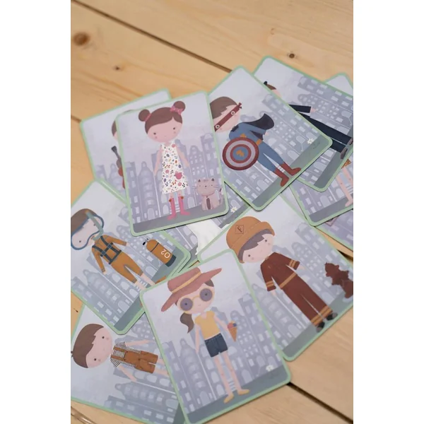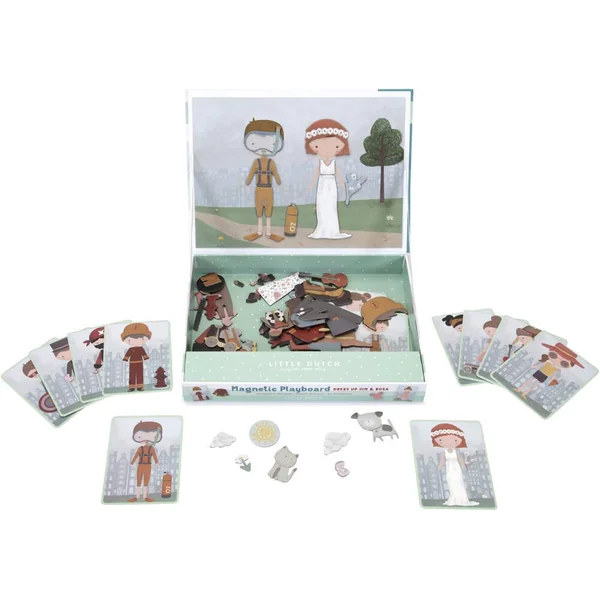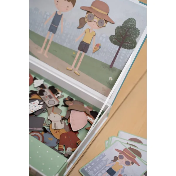 C’est le moment de se déguiser avec Jim et Rosa ! Ce puzzle magnétique permet de reproduire les tenues qui sont sur les cartes du plateau à l’aide des pièces magnétiques, ou d’imaginer ses propres créations. Ce jeu aux possibilités infinies favorise l’enrichissement du vocabulaire et stimule la coordination de manière ludique, à la maison comme sur la route.