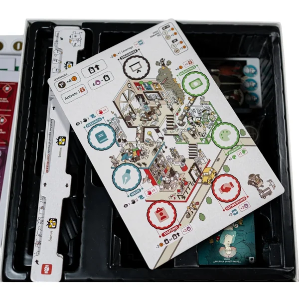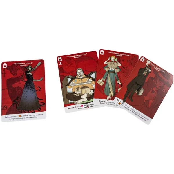 Dans ce jeu de type » tycoon », les joueurs utilisent des membres du personnel (cartes placées devant leur plateau Studio personnel) pour choisir parmi une gamme d’actions disponibles (limitées par le type de personnel).