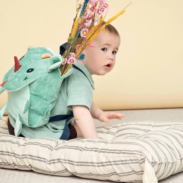 Joe le dragon ne ferait pas de mal à une mouche, sauf si elle venait à attaquer votre petit ? Loyal et rigolo, Joe est l’ami qu’il nous faut ! Et avec ses pouvoirs de magicien, on ne s’ennuie pas une seconde ! Ce sac à dos Joe le dragon peut contenir le doudou et le goûter de votre enfant lorsqu’il part à l’aventure. Son côté tout doux le rend très agréable à porter tandis que sa petite sangle accrochable à l’avant permettra à votre bambin de le porter facilement. Les nombreux détails de Joe : son nez pointu rouge, sa petite langue qui dépasse, sa mèche de cheveux jaune… sans oublier ses couleurs vives et harmonisées feront qu’il ne voudra jamais s’en séparer. Ce sac est rembourré en polyester recyclé. Il convient parfaitement pour un sac de crèche. Votre petit amour ne sera plus jamais seul quand il quittera la maison.