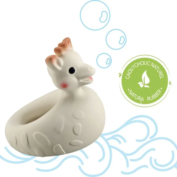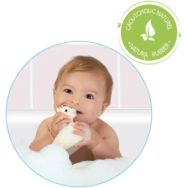 Idéal pour s’amuser dans le bain ! Sain, il est composé de caoutchouc 100% naturel, tiré de la sève de l’hévéa et de peinture alimentaire. Grâce à sa texture souple, bébé pourra s’amuser à mordiller les nombreuses parties de ce jouet flotteur à l’effigie de Sophie la girafe ! (oreilles, cornes…) Hygiénique, l’eau ne peut pas rentrer dans le jouet, pour éviter toutes bactéries ou moisissures. En forme de bouée, il est facile à saisir par les petites mains !
