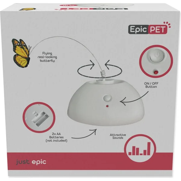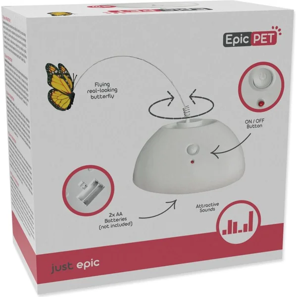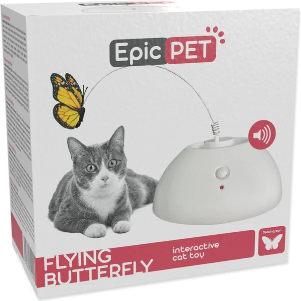 Un papillon volant qui imite le vol naturel d’un papillon, stimule chez les chats leurs instincts de chasse naturels. Pour un jeu ininterrompu, la base du jouet a été conçue pour être aussi stable que possible et pour éviter qu’elle ne bascule pendant que les chats jouent. Le papillon est fixé à un fil en acier inoxydable pour que le jouet soit le plus résistant possible.