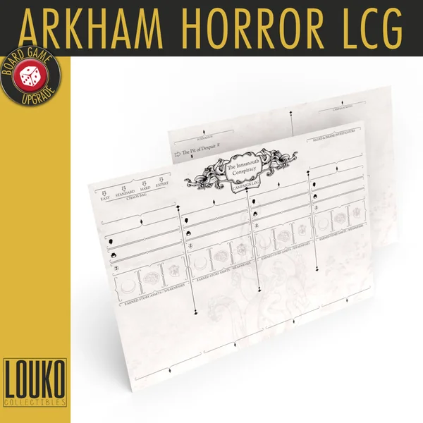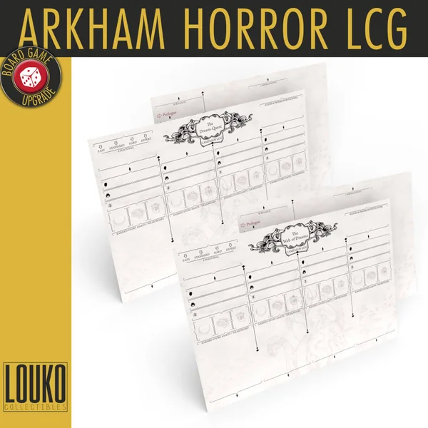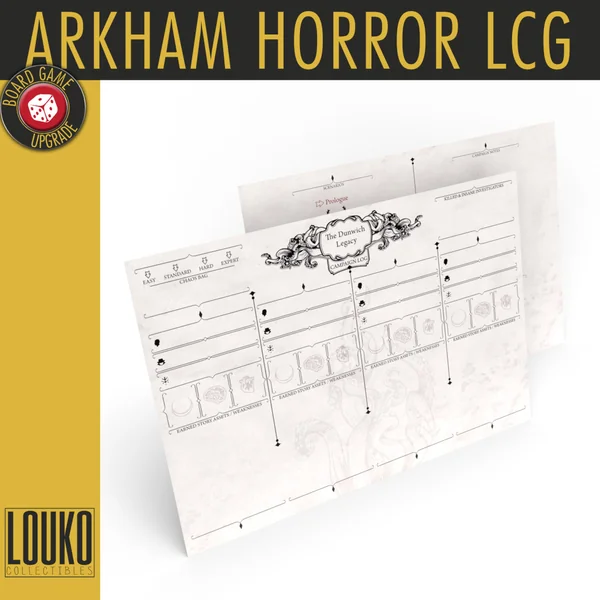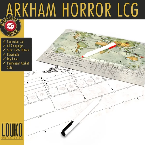 Un moyen simple de suivre votre campagne dans Horreur à Arkham JCE (La Nuit de la Zélatrice, L’Héritage de Dunwich, La Route de Carcosa, La Civilisation Oubliée, Le Cercle Brisé, Les Dévoreurs de Rêves, La Conspiration d’Innsmouth, Aux Confins de la Terre, Les Clefs Ecarlates, Le Festin de Hemlock Vale & La Cité Engloutie) avec des feuilles de sauvegarde réinscriptibles, compatibles marqueurs effaçables à sec.