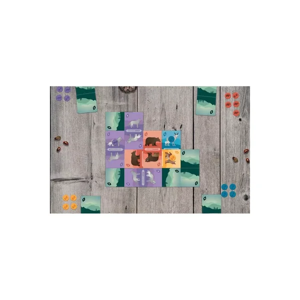 Plus en détail, lorsque c’est votre tour, ajoutez les cartes qui sont déjà sur la table pour couvrir celles de vos coéquipiers, ou défaussez une carte face cachée pour agrandir la forêt et créer un nouvel espace à explorer.