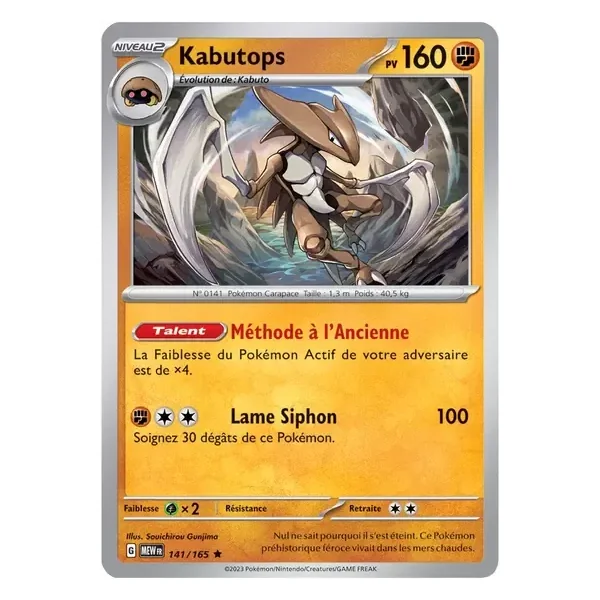 Découvrez Kabutops (mew141), une carte Pokémon de l’extension 151, provenant du bloc Écarlate & Violet. Idéale pour compléter votre collection, cette carte Rare plaira autant aux collectionneurs qu’aux joueurs.