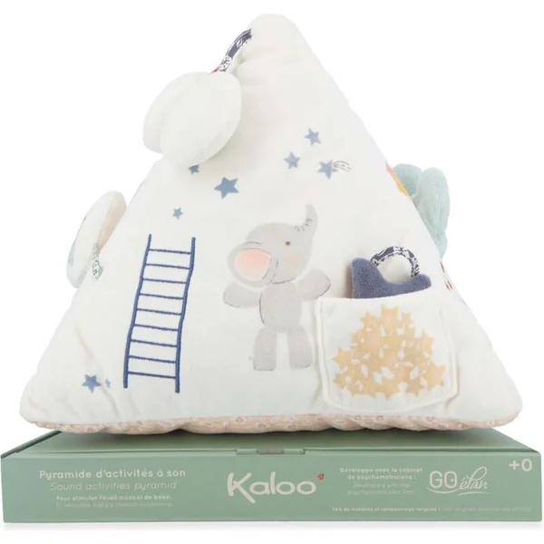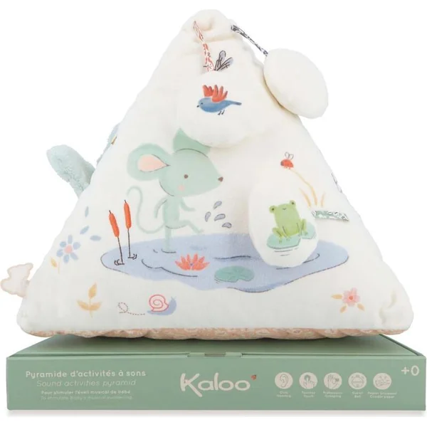 Cette pyramide avec activités sonores fait partie de la collection Petites Chansons de Kaloo : une gamme dédiée à l’éveil sonore, développée en collaboration avec une équipe de thérapeutes psychomoteurs et composée de différents sons pour stimuler l’enfant.