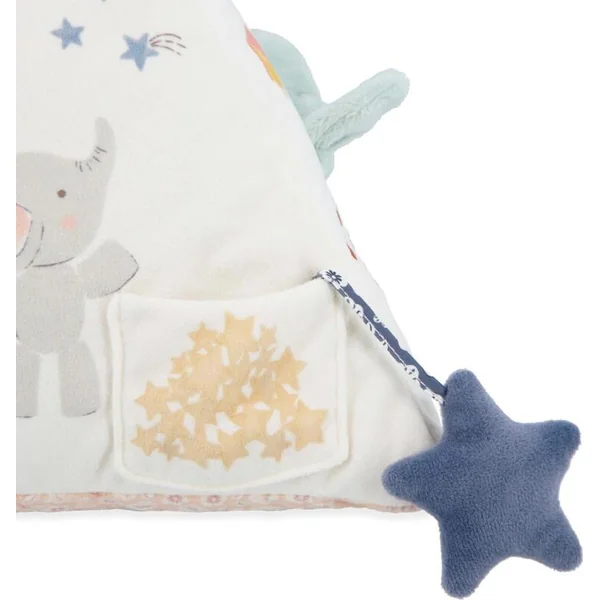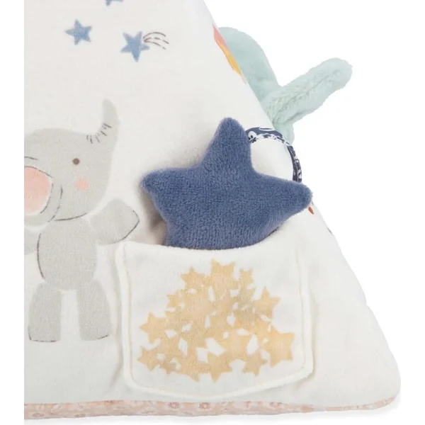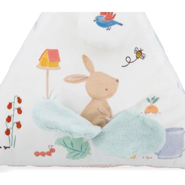 Cette pyramide en tissu, que vous pouvez placer dans le parc ou sur le tapis de jeu de votre enfant pour jouer ensemble, offre des activités douces à découvrir sur trois côtés. Du papier froissé qui craque, une cloche qui tinte joyeusement…