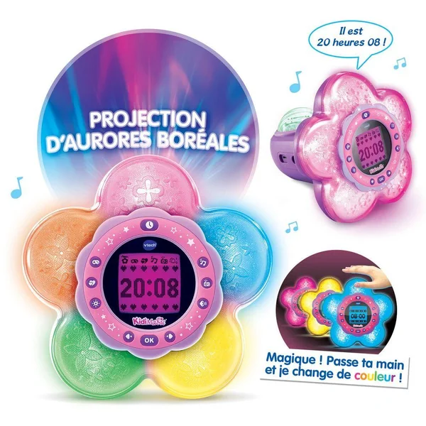 Un nouveau radio-réveil magique en forme de fleur avec projection d’aurores boréales au plafond ! Nouveau look en forme de fleur et nouvelle projection sur le thème des aurores boréales pour ce joli radio-réveil magique.