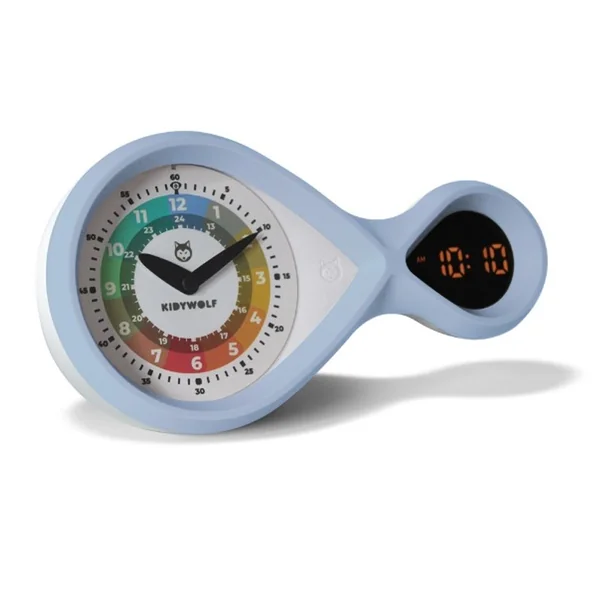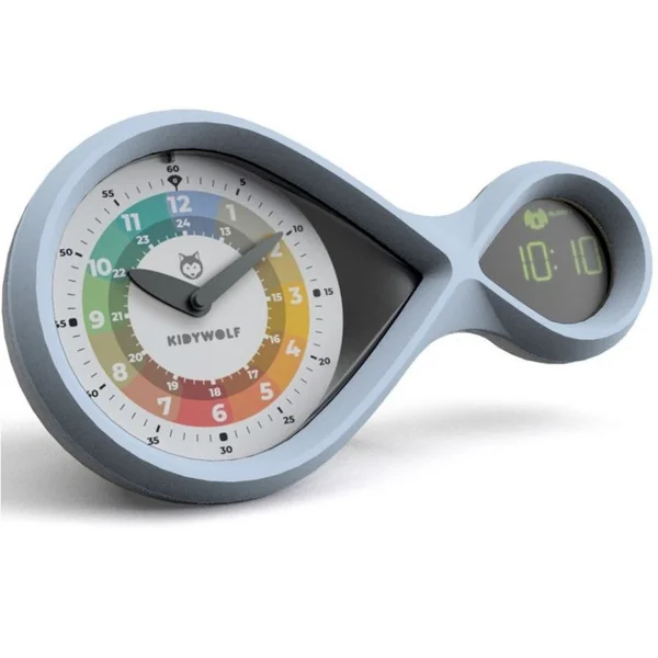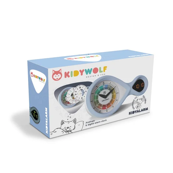 Le KIDYALARM est plus qu’un simple réveil. Il a été conçu pour aider votre enfant à lire l’heure. Ce réveil éducatif grandira avec votre enfant grâce à ses 3 cadrans évolutifs et interchangeables : un cadran (dès 6 ans) permet d’associer les couleurs aux heures pleines tandis que les deux autres cadrans (8 & 10 ans) permettent de comprendre la notion d’heures et de minutes. Sa forme rappelle l’infini.