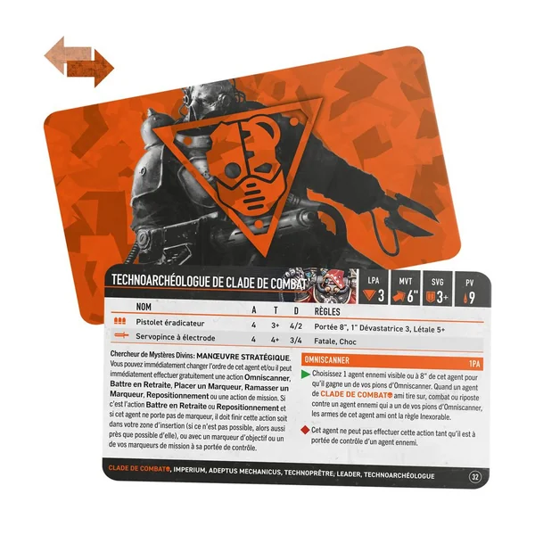 Les kill teams des Clades de Combat désassemblent leurs ennemis dans des actes d’agression calibrée. Avec leurs outils industriels, leurs systèmes cybernétiques et leurs armes augmentées redoutables, les servitors menés par un Technoarchéologue et un Contremaître de Servitors sont prêts à capturer et à protéger les ressources nécessaires au Techno-clergé de Mars.