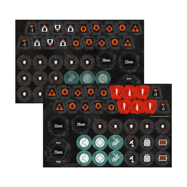 Dans la boîte, vous trouverez également une planche de 38 pions double face des Lames de Khaine, afin de garder facilement un œil sur votre équipement et les effets en cours dans le feu de la bataille.