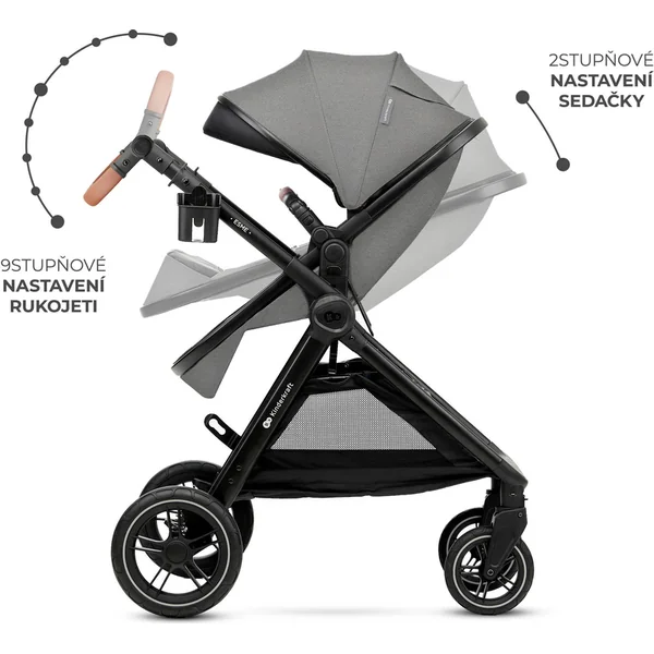 ESME est confortable même pour les enfants plus âgés : le siège sportif est long et large, ce qui le rend adapté aux enfants d’âge préscolaire jusqu’à environ 4 ans. Le siège peut être facilement ajusté en fonction des besoins de l’enfant – il y a des positions assises et semi-allongées, idéales pour un court repos. La poignée pour les parents est également réglable, vous permettant d’adapter la poussette à votre confort.
