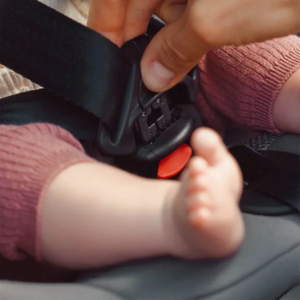 Les ceintures internes à 5 points ont des inserts antidérapants et des crochets sur les côtés du siège pour les suspendre. Le siège est équipé d’une boucle non basculante qui facilite l’attache de l’enfant.