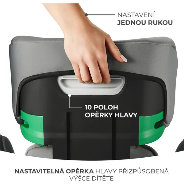 Vous pouvez régler l’appui-tête du siège auto d’une seule main. Il dispose de jusqu’à 10 niveaux de réglage, ce qui vous permet d’ajuster parfaitement l’appui-tête à la taille de votre enfant. N’oubliez pas que seul un réglage correct peut efficacement protéger la tête de votre enfant lors d’un impact !