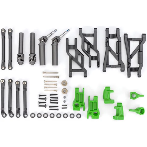 Kit de suspension Extreme Heavy Duty – vert, pour charges lourdes. Améliorez les parties exposées de votre modèle avec ce kit fabriqué à partir des matériaux les plus durables utilisés par Traxxas. Le kit est conçu pour durer, que vous traversiez un terrain difficile ou que vous sautiez avec le modèle. L’emballage contient des pièces individuelles que vous pouvez facilement remplacer par les originales.