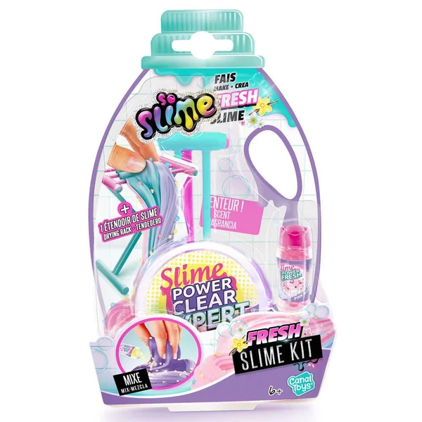 Mélange les décorations parfumées avec ta slime et crée un effet booster de fraicheur ! Amuse toi en étirant ta slime et laisse la poser sur ton étendoir inclus !