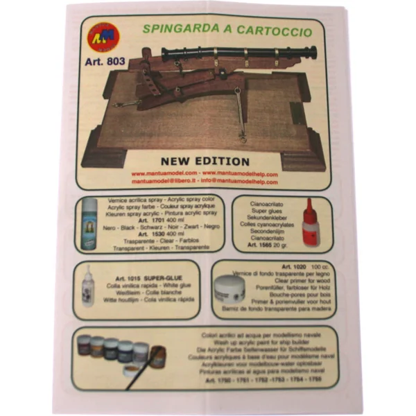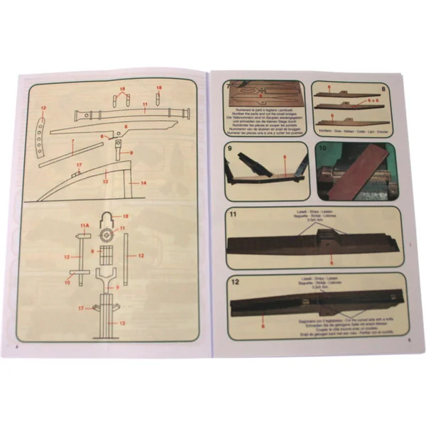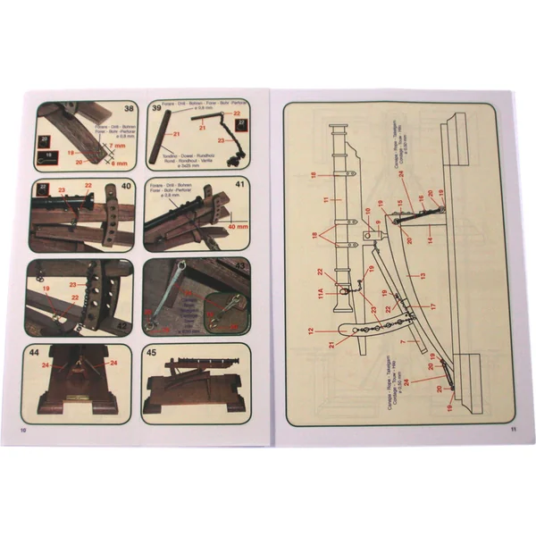 Tous les modèles d’armes historiques Mantua sont fabriqués à partir de bois dur de haute qualité et sont complétés par des pièces métalliques, comme des ferrures en laiton. Le bois est découpé au laser pour un assemblage précis. Le manuel est équipé d’illustrations complètes. La gamme de modèles historiques d’armes Mantua comprend des canons, des mortiers, des catapultes, des chars de combat et bien d’autres, il y en a vraiment pour tous les goûts.