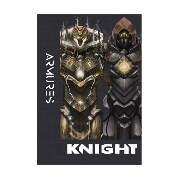 Knight – Fiches armures est une pochette regroupant 17 fiches armures pour le jeu de rôle Knight avec leurs principales caractéristiques et capacités.