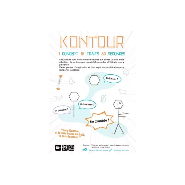 Dans Kontour, les joueurs vont tour à tour tenter de faire deviner des mots en utilisant au maximum 15 traits. Le joueur qui dessine et le joueur qui devine marquent des points. Le premier qui en totalise 10 gagne la partie.