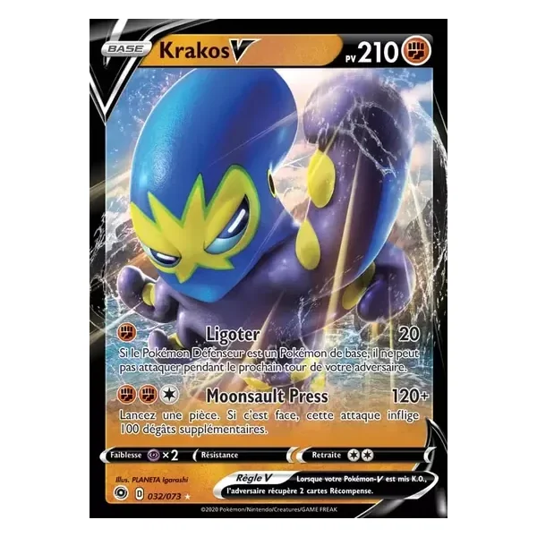 Découvrez Krakos (cpa032), une carte Pokémon de l’extension La voie du Maître, provenant du bloc Épée & Bouclier. Idéale pour compléter votre collection, cette carte Ultra Rare plaira autant aux collectionneurs qu’aux joueurs.