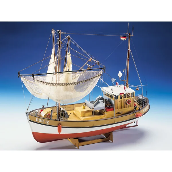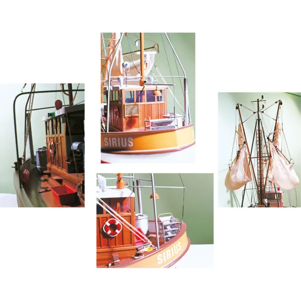 Le kit de maquette du bateau de pêche Sirius est un modèle attrayant à l’échelle 1:16. Avec une longueur de 900 mm, il est possible de reproduire fidèlement les détails et de plus, le bateau peut être équipé d’un moteur et de tout le nécessaire pour fonctionner sur l’eau. La coque est en ABS profondément moulé, le pont est en bois tout comme les superstructures du pont. Des poteaux, des tubes en laiton et des raccords avec de nombreuses petites pièces métalliques sont inclus dans l’emballage. Un plan détaillé avec des instructions et de nombreux croquis détaillés facilitent l’assemblage.