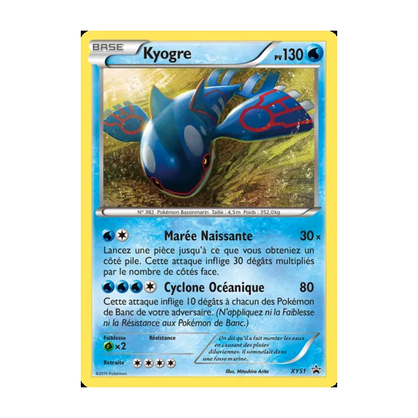 Découvrez Kyogre (xypr051), une carte Pokémon de l’extension Promos XY, provenant du bloc XY. Idéale pour compléter votre collection, cette carte Promo plaira autant aux collectionneurs qu’aux joueurs.