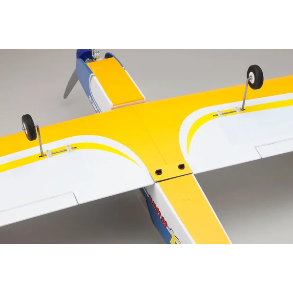 Structure de l’aile en Balsa et déjà entoilé en usine •Tubes de tringleries et charnières déjà installés en usine •Compartiment avec bati moteur universel •Capôt moteur facile à ouvrir pour facilité la maintenance et les réglages du moteur