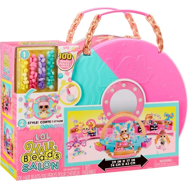 LOL Surprise présente son tout nouveau salon LOL Surprise Hair Beads™ ! Déballez le kit et découvrez de nombreuses surprises, y compris une poupée de collection unique avec des accessoires stylés, 100 perles à cheveux pour des coiffures infinies avec 3 ensembles d’extensions. La valise de salon peut également être utilisée comme boîte de rangement pour vos poupées et comme kit de jeu.