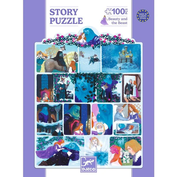 L’enfant reconstitue un puzzle pour découvrir le célèbre conte de la Belle et la Bête sous forme d’une BD muette. Ce magnifique puzzle de 100 pièces est présenté dans une jolie boîte.