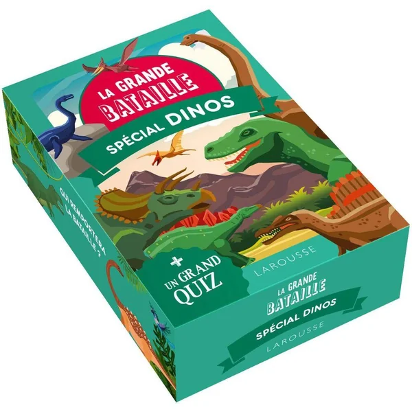 La grande bataille est un jeu incontournable qui séduira les tout-petits comme les plus grands ! Ce jeu permet à l’enfant de s’initer aux chiffres et stimule sa concentration ! Malin, la taille des dinosaures détermine le vainqueur et permet à l’enfant de se représenter la valeur du chiffre. En plus ! Le livret qui accompagne les cartes donne aussi des informations essentielles sur tous les dinosaures.