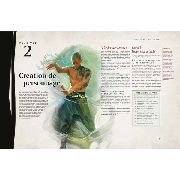 La Légende des Cinq Anneaux : le Jeu de Rôle fournit aux joueurs et aux maîtres du jeu tous les outils nécessaires pour raconter des récits dramatiques dans l’Empire d’Émeraude. Cet ouvrage présente les règles nécessaires pour créer un personnage ayant juré de servir l’un des sept clans majeurs, et pour mener des parties où fleurissent intrigues et conflits. Un large éventail de compétences, de techniques et de caractéristiques permet aux joueurs de personnaliser leur alter ego d’un point de vue mécanique et narratif.