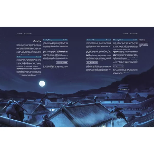 Grâce au système basé sur des dés spéciaux, le joueur est capable de contribuer à l’intrigue et de choisir si son personnage réussit, dans quelle mesure… et ce qu’il lui en coûte. Quant au fantastique univers féodal de Rokugan, il offre une toile de fond splendide et majestueuse à ces épopées.