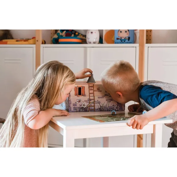 Une famille de petites souris s’est installée chez vous ! Les coquines ne se gênent pas pour vous chiper quelques objets afin de décorer leur mini-maison. En leur absence vous ne résistez pas à l’envie d’aller regarder discrètement à leur fenêtre pour en savoir plus. Où est passée ma bague ? Et la clef ? A quoi peut bien leur servir mon bouton ? Tous ensemble, les joueurs vont observer les différents recoins de la maison par les fenêtres avant que la lampe ne s’éteigne. Il faudra alors se souvenir de l’emplacement et du sens des jetons pour retrouver le maximum d’objets avant le retour des petites souris ! Dans ce jeu de mémoire coopératif, les joueurs doivent observer et mémoriser tous ensemble la position et le sens des différents jetons afin de retrouver les objets dérobés par les souris. Réussirez-vous à tous les retrouver avant qu’elles ne reviennent ? Nombre de joueurs de 2 à 6. Durée de la partie 20 minutes.