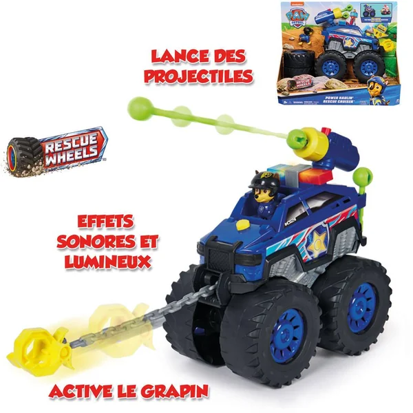 Un véhicule interactif tout-terrain de Chase pour partir en mission. Ce véhicule doté d’effets sonores et lumineux contient un grappin fonctionnel pour des missions périlleuses. Appuie sur le bouton pour lancer le grappin et remorquer le véhicule. Contenu : 1 véhicule tout-terrain, 1 figurine de Chase amovible et 2 projectiles. 2 piles de démonstration LR03 fournies.