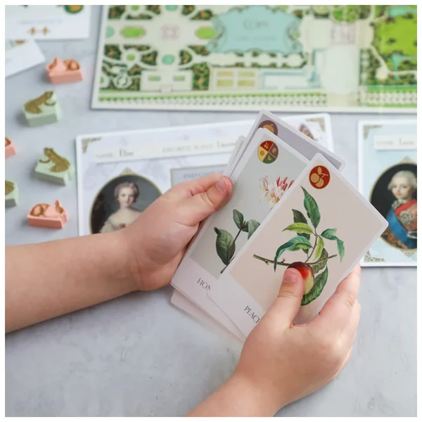 Envoyez vos assistants dans différentes parties du jardin de Versailles pour cueillir des fleurs, trouver des pièces, faire du commerce et inviter des amis animaux à votre fête.