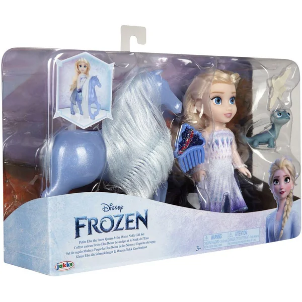Revivez vos moments préférés du film La Reine des Neiges avec ce coffret. Elsa est vêtue de sa tenue emblématique et est accompagnée d’un peigne pour se coiffer ou coiffer Nokk.