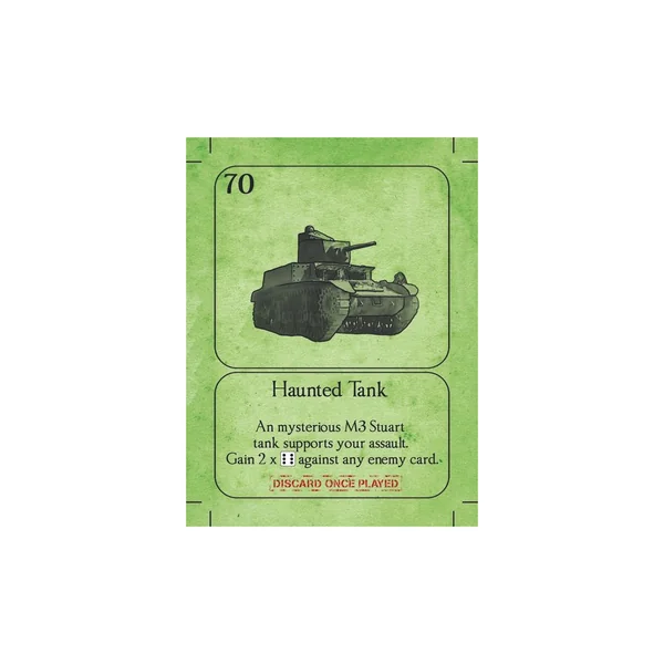 Les cartes C’est la Guerre peuvent être achetées en jeu en dépensant une somme de dés égale ou supérieure à 6. Ces cartes confèrent des avantages aux joueurs et/ou vous permettent de perturber vos adversaires. Le jeu de base est livré avec ses propres cartes C’est la Guerre. Le paquet Mes Amis comprend de nouvelles cartes telles que des chars américains, des commandos britanniques et des avions alliés.