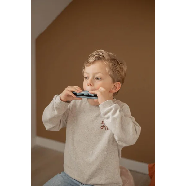 Le petit musicien adorera le son de ce joli harmonica libellule ! En soufflant sur les différents trous de l’harmonica, celui-ci jouera différentes notes et tonalités. Agrandissez votre petit groupe avec l’un des autres instruments de Label Label !