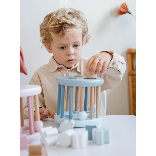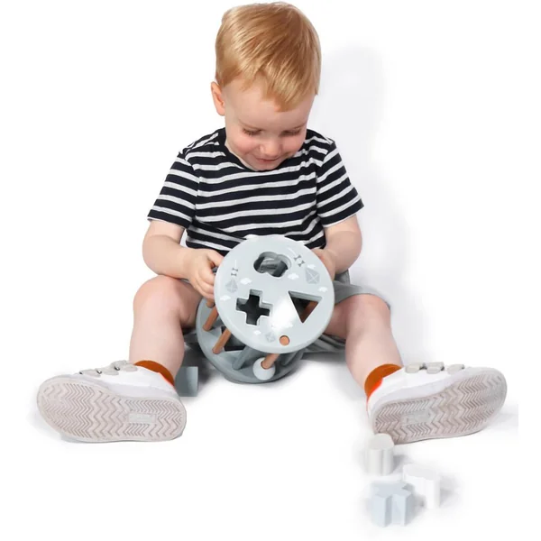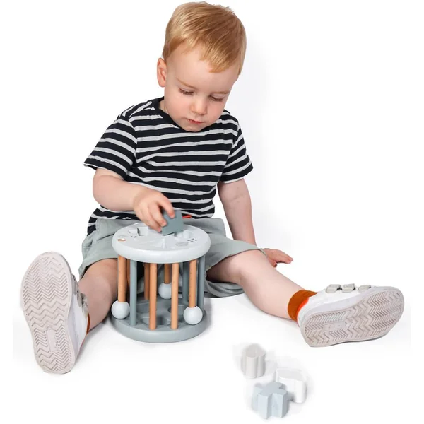 Ce magnifique jeu de formes à roulettes de Label Label est livré avec 6 formes géométriques différentes, dont un triangle, un carré, un cercle, un nuage, etc. Insérez les différentes formes en bois dans les ouvertures correspondantes et laissez la roue rouler. Vous pouvez facilement retirer les formes en faisant glisser la tige en bois avec la bille vers le haut. Les enfants s’amuseront sans fin. Ils s’exercent non seulement à reconnaître les formes et les couleurs, mais ils stimulent également leur motricité fine et leur dextérité. Les bébés qui commencent à marcher à quatre pattes développeront leur motricité en suivant ce jeu de formes qui roule. Un jouet amusant, durable et magnifique, spécialement conçu pour les petites mains qui apprennent à saisir et à explorer.