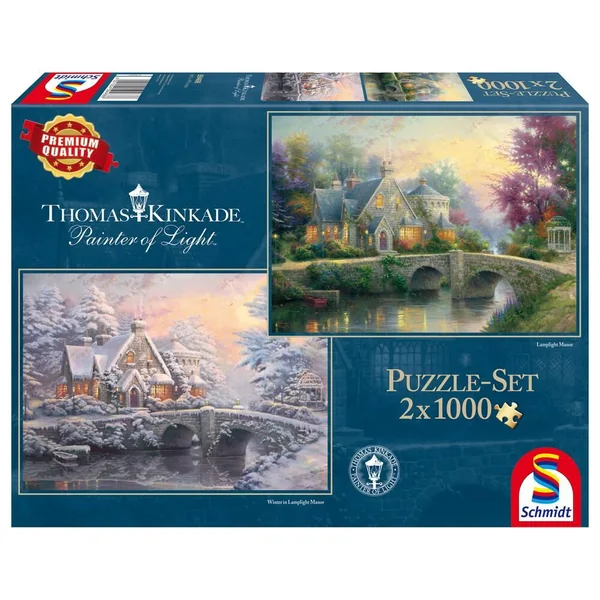Puzzles 2×1000 pièces de Thomas Kinkade, artiste peintre mettant en valeur des plaisirs simples et des messages servant de source d’ inspiration.